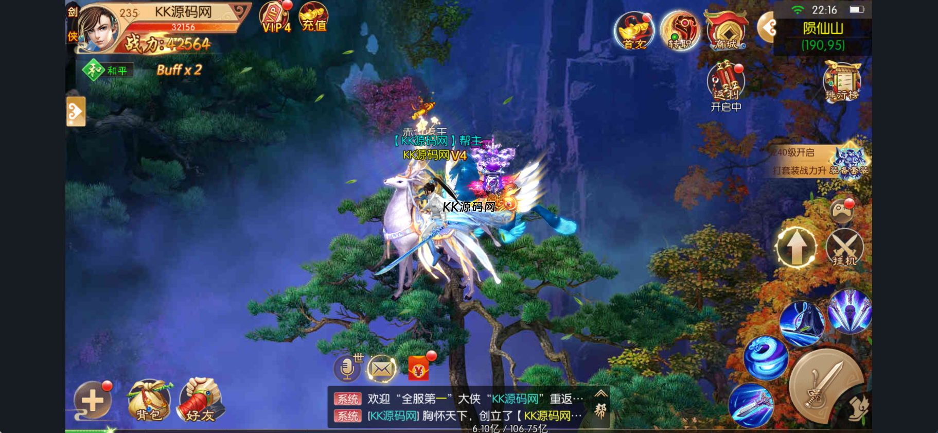 本页提供《剑侠风云录之斩妖诀多区跨服版》单机资源,仅供研究学习,下载后须在24小时内删除或购买正版视频。登录界面以金色艺术字“斩妖诀”为标题,月夜樱花湖、古风建筑、浮莲垂枝构成仙侠氛围,左侧显示“1服‑KK源码网1区”,并提供“点击换服”切换多区跨服功能,底部设有“返回”“确认”橙色按钮,突出跨服选择的便捷性。
